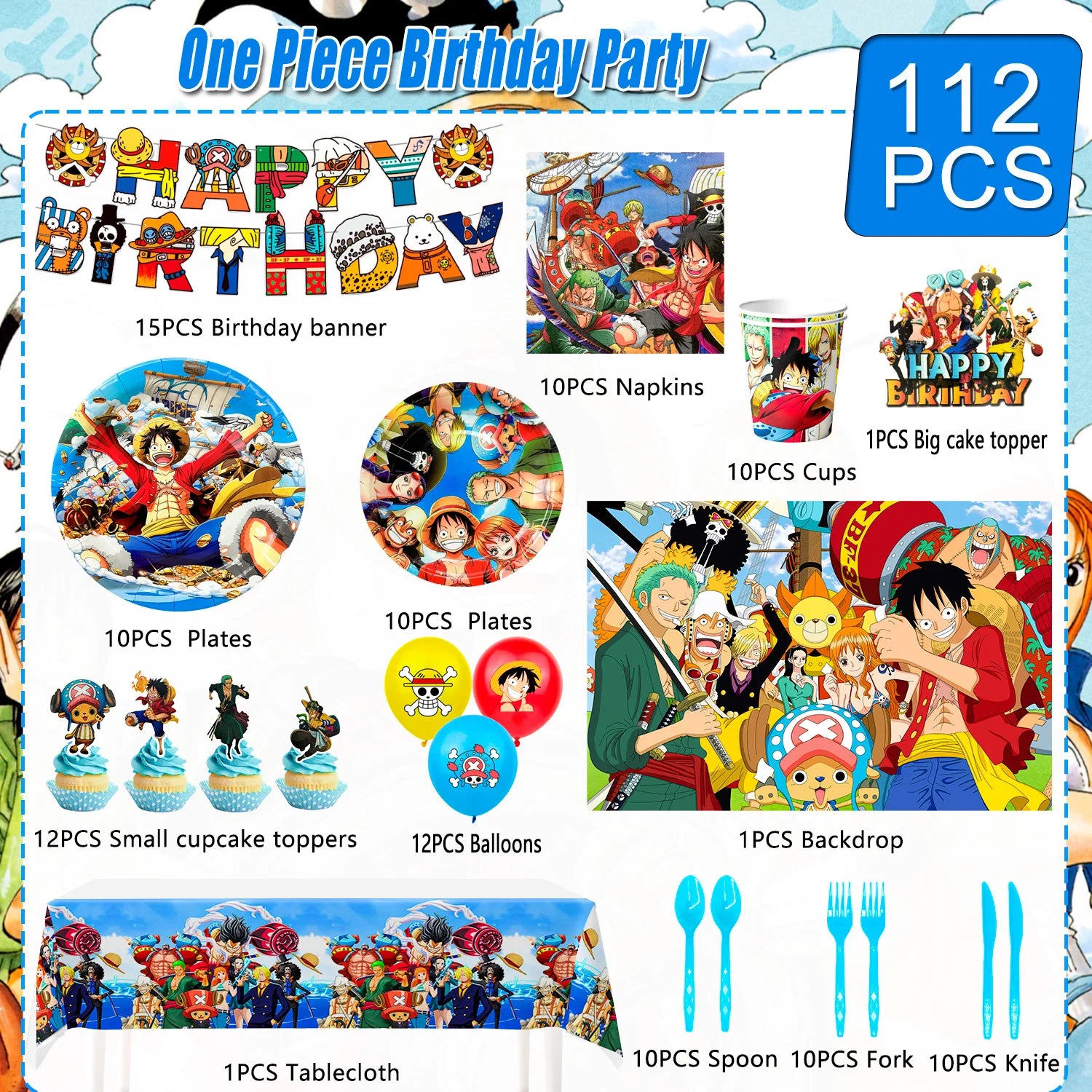 One Piece Birthday Party Supplies Set – 112pcs 🎉🏴☠️