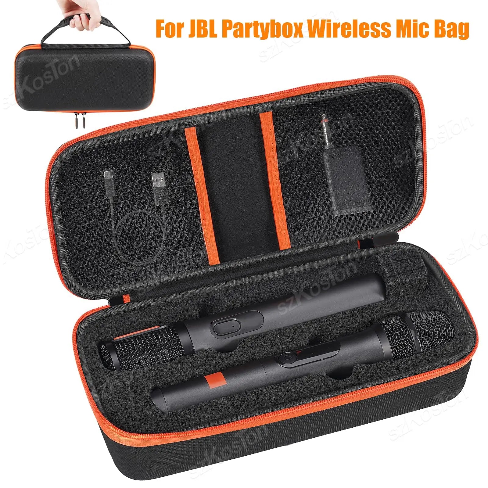 Travel Storage Bag Wireless Microphone Case Compatible with JBL 2 Mic Adjustable DIY Foam for Partybox Mic Portable Bag